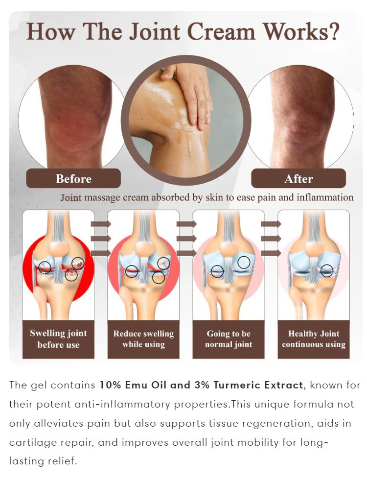 Powered by Emu Oil and Turmeric Extract, it’s great for arthritis, stiffness, back pain, knee pain, and shoulder pain